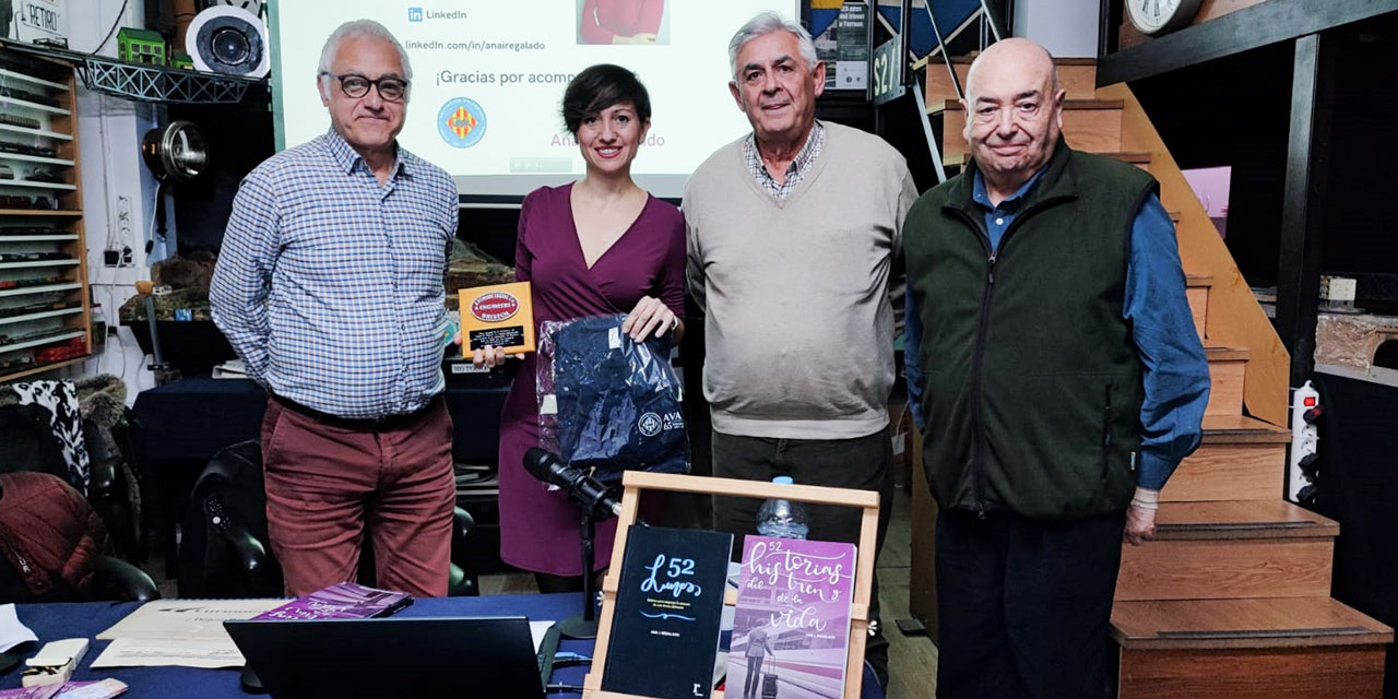 Se trataba, como anteriormente en Amigos del Ferrocarril de Bilbao o en la Fundación de Ferrocarriles Españoles, de dar eco a una cuidada publicación que Ana Regalado había editado. El que narra un aspecto curioso de la vida de una Jefa de Tripulación en origen en EUROMED, y luego también en otros de los trenes que gozan de ello en España como los ALVIA. Y destaca así, públicamente y sin tapujos, la sensación de que no siempre reina la monotonía en el AVE, de que hay cabida para la meditación y la reflexión durante el desplazamiento aunque éste sea de alta velocidad, o la percepción de que no todos los viajeros son insensibles o iguales.