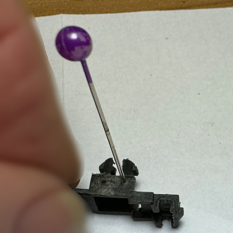 Como es un plástico bastante duro, para hacer que las brocas hicieran su trabajo, primero les hacía una guía con un alfiler.